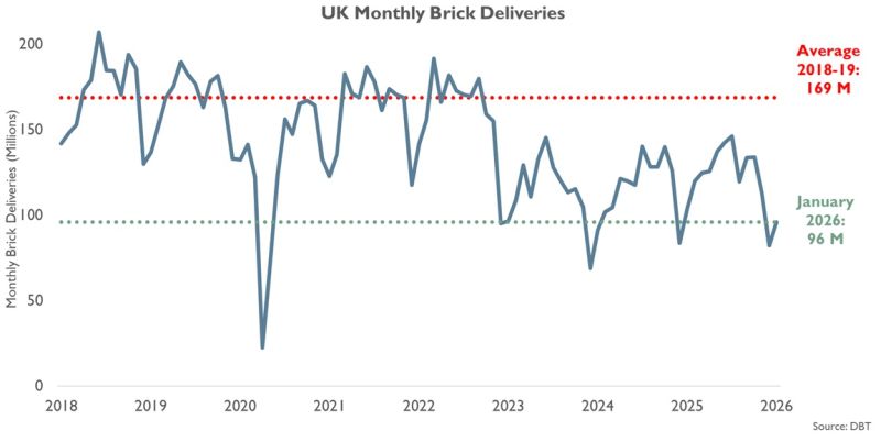 UK brick deliveries fell at the start of 2026, adding to doubts over whether housebuilding activity will rebound strongly this year after a weak 2025. Deliveries in January were 7.6 per cent lower than a year earlier, according to Department for Business and Trade data, in a closely watched indicator for new housing starts at a time when monthly starts figures are not available.